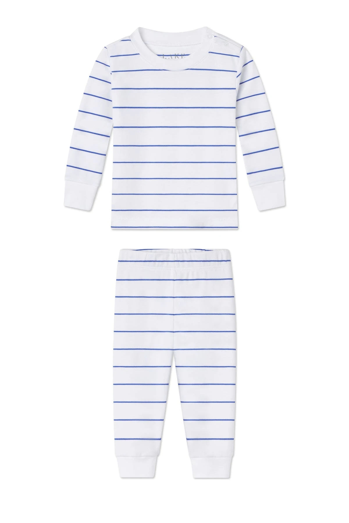 The Baby Long-Long Set in Cobalt, a royal blue for the discerning blue and white devotee, features a long-sleeve top with two functional snaps and pants with an elastic waist. Made from 100% Pima Cotton. This garment is not flame resistant. For the child’s safety, this garment should fit snugly.