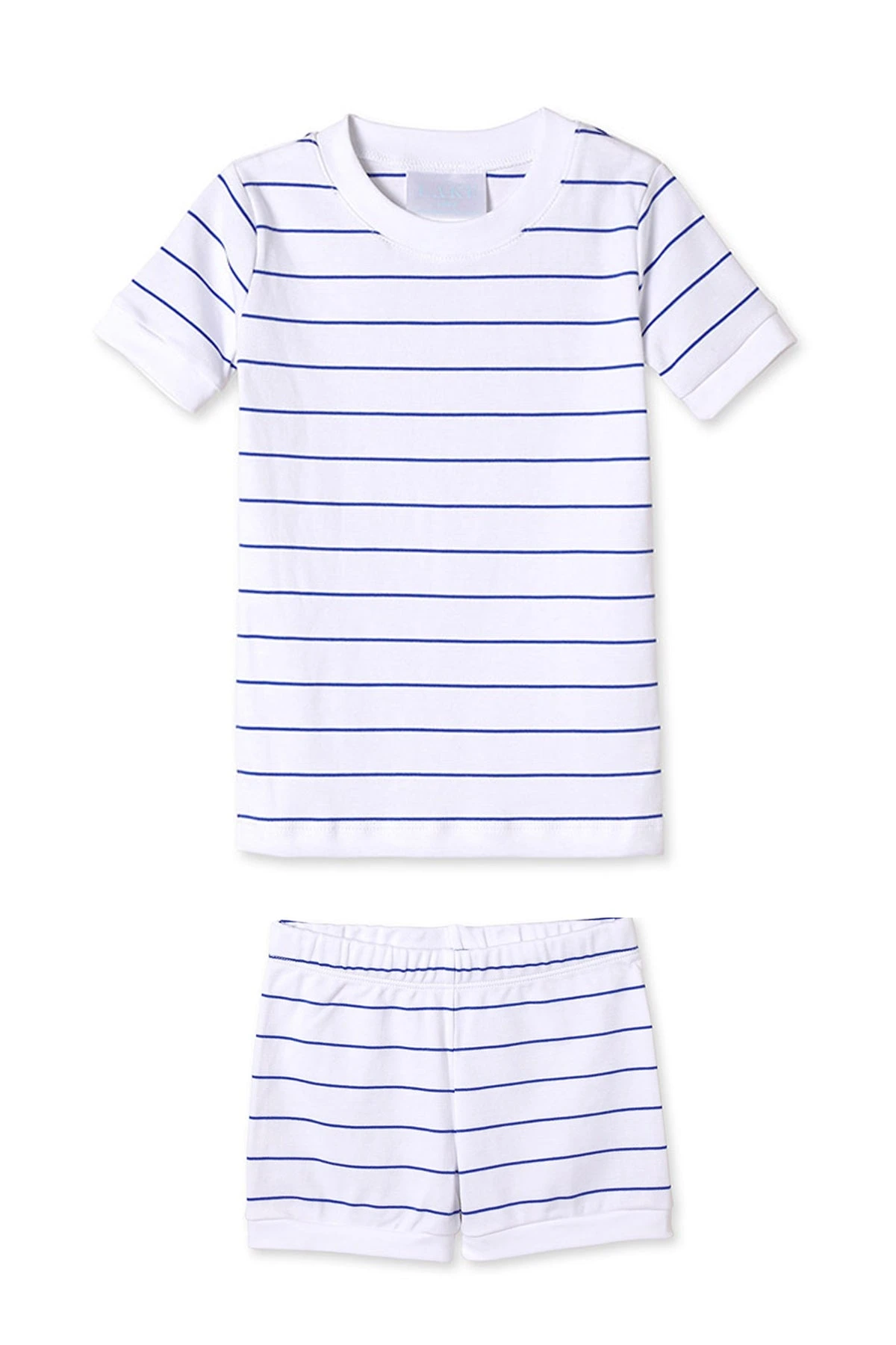 The Kids Shorts Set in Cobalt, a royal blue for the discerning blue and white devotee, features a short-sleeve top and shorts with an elastic waistband. Made from 100% Pima cotton. This garment is not flame resistant. For the child’s safety, this garment should fit snugly.