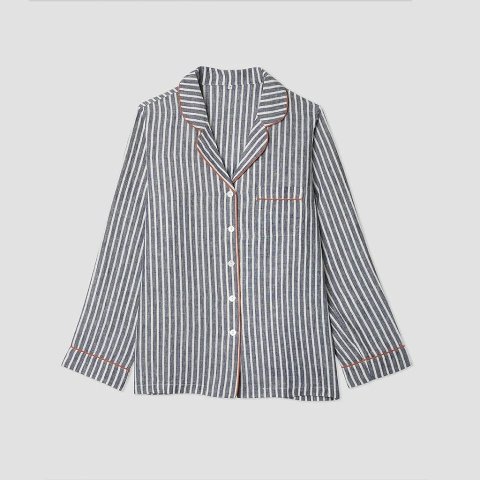 Made for those who like their sleepwear to be timeless yet comfortable, our Midnight Stripe men’s pajama shirt is made from super soft 100% stonewashed linen. Linen keeps you cozy and warm in the winter and cool in the summer. Our linen pajama shirt can be paired with our pajama pants to complete the look.