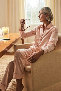 Lake Poplin Piped Pants Set In Peach