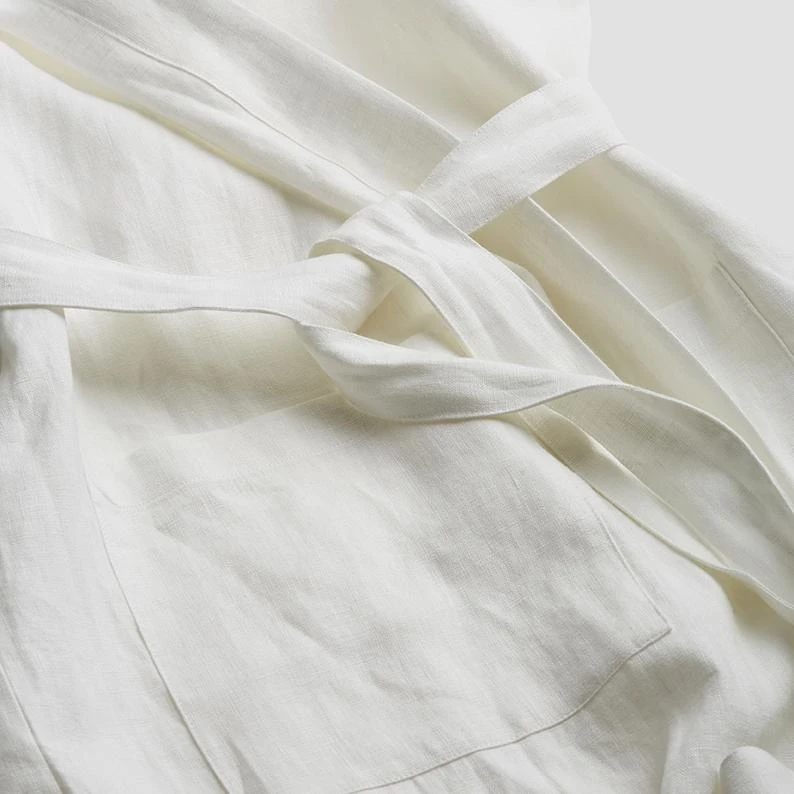 Made for self-care days, our White robe is made from 100% stonewashed linen which is slightly thicker than the linen used for our pajamas for extra warmth and cover. Linen keeps you cozy and warm in the winter and cool in the summer. Our linen robes are the perfect addition to your morning routine, just pop it on as soon as you get out of the shower or whilst you’re having your morning coffee.